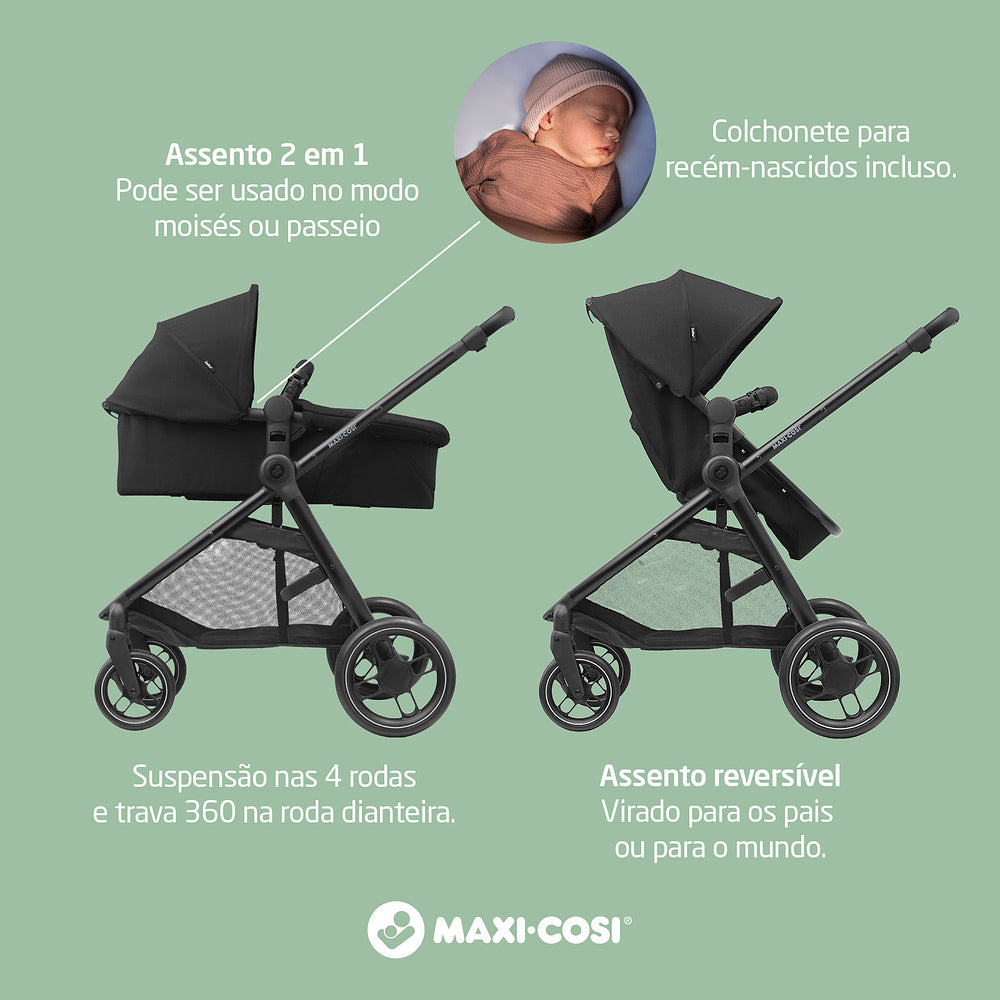 Os pais costumam ser ocupados, portanto, precisam de todo o suporte possível para facilitar a rotina com o seu pequeno, principalmente nos momentos de deslocamento. Pensando nisso, a Maxi-Cosi desenvolveu o prático 2 em 1 carrinho de bebê Anna³. Ele é ideal para as famílias que precisam de segurança e praticidade.