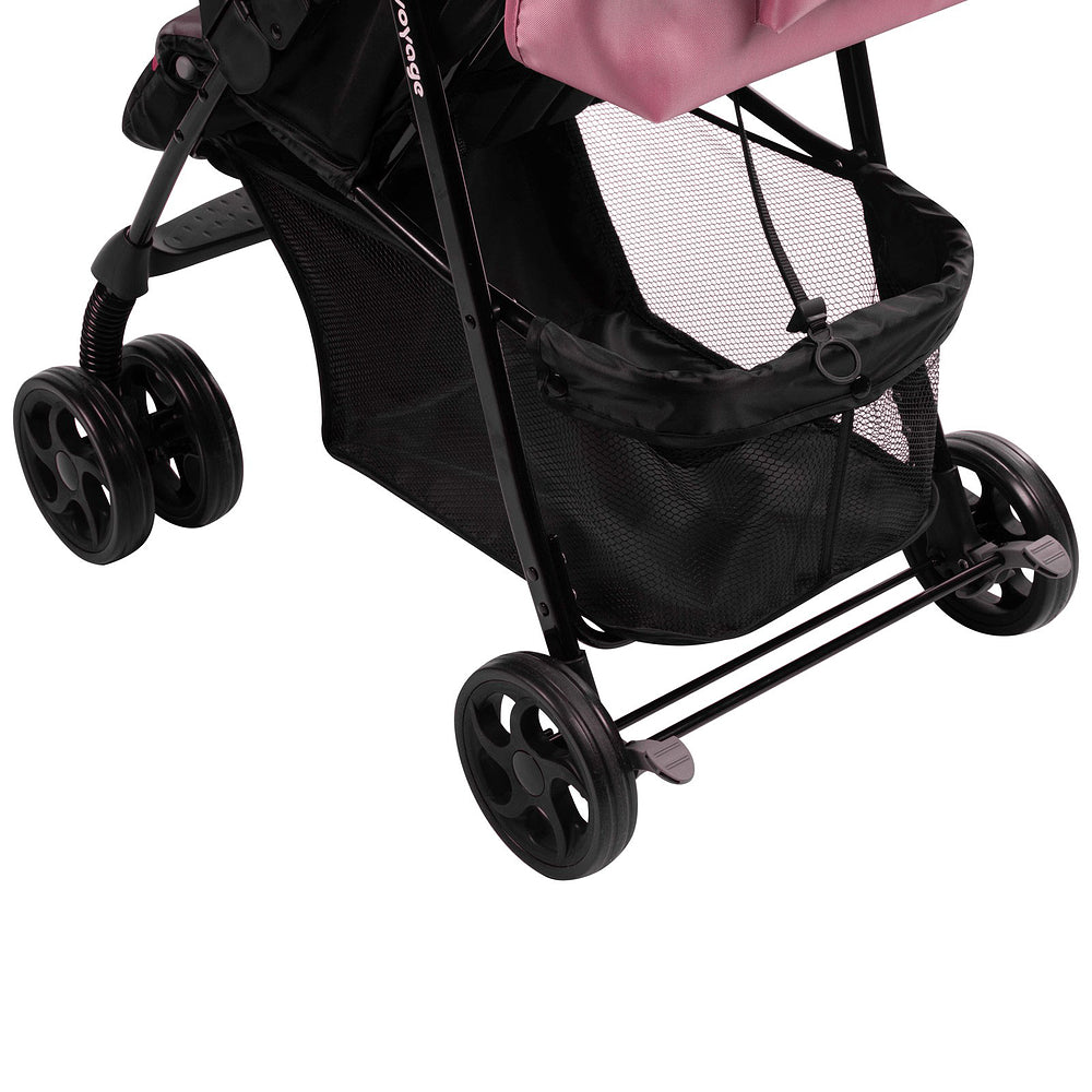 O cesto porta-objetos é espaçoso para levar os itens do bebê. Cinto de segurança de 5 pontos com ajuste de altura, rodas traseiras com freio centralizado e rodas duplas frontais com trava de movimento. Sua estrutura é leve e o fechamento envelope rápido pode ser feito com uma única mão, deixando a outra livre.